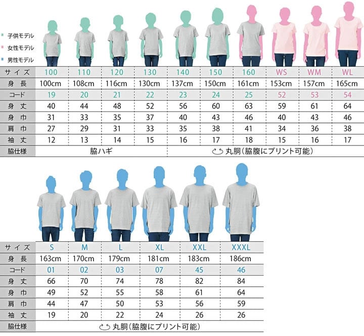 ・S~XXXLは男女共用。ユニクロと比べてワンサイズ近く「大きめ」です。