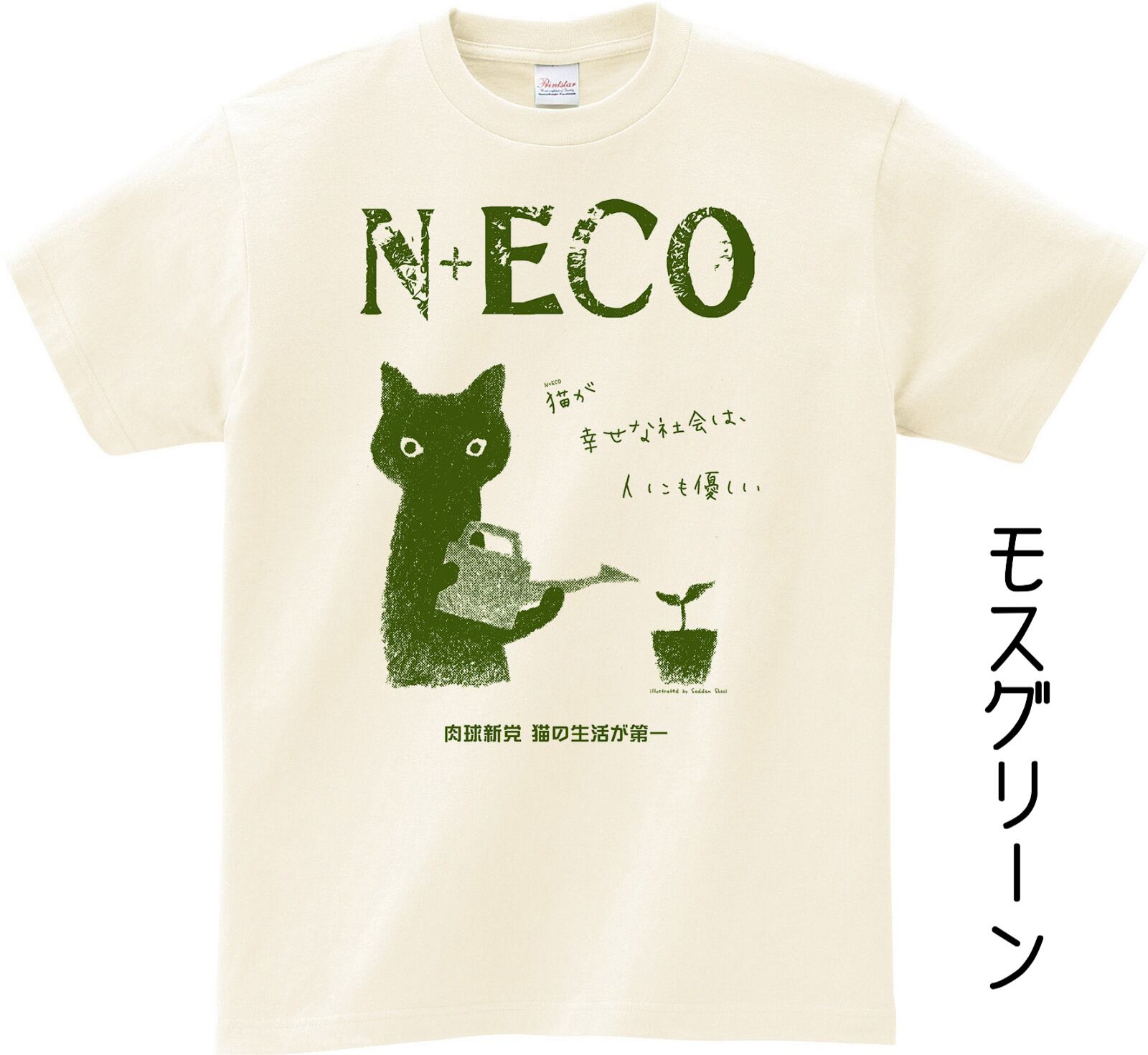 環境問題やエコロジーをネコ的に考えることを訴えるイラストで、ショウジサダムさんのデザインによるTシャツです。