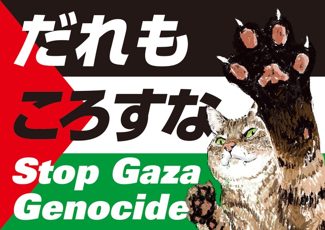 ◆プラカードB【パレスチナ】=①だれもころすな、②イスラエルはガザから撤退しろ の両面印刷